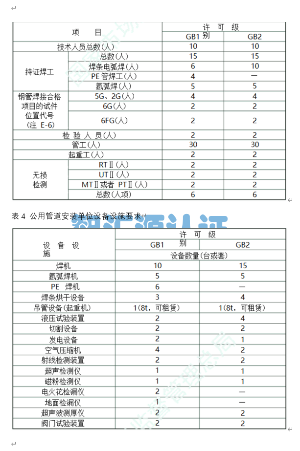 (2)配備工藝、材料、焊接、檢驗、無(wú)損檢測、管道防腐補口、理化檢驗、設備管理、清管掃線(xiàn)等質(zhì)量控制系統責任人員,其中無(wú)損檢測質(zhì)量控制系統責任人員應當具有射線(xiàn)檢測或者超聲檢測Ⅱ級資格;