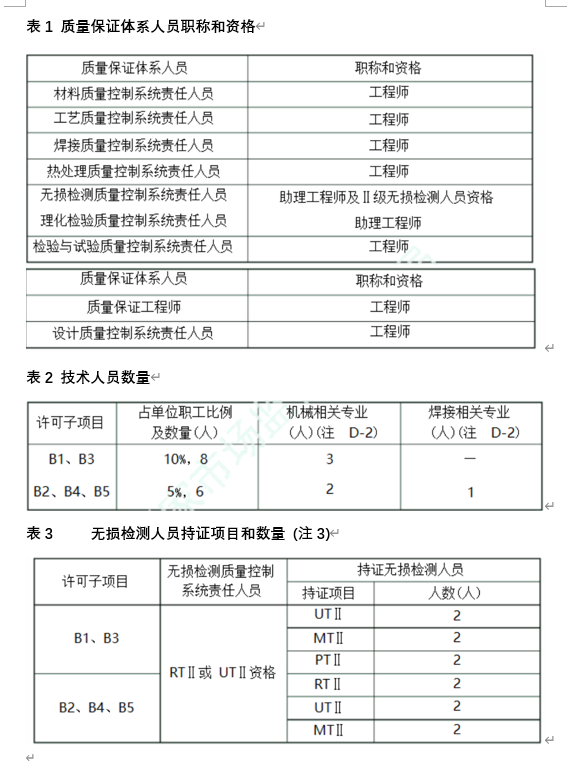注1:產(chǎn)品制造過(guò)程中無(wú)焊接、熱處理、無(wú)損檢測等過(guò)程的,不需要配備相應的質(zhì)量控制系統責任人員。